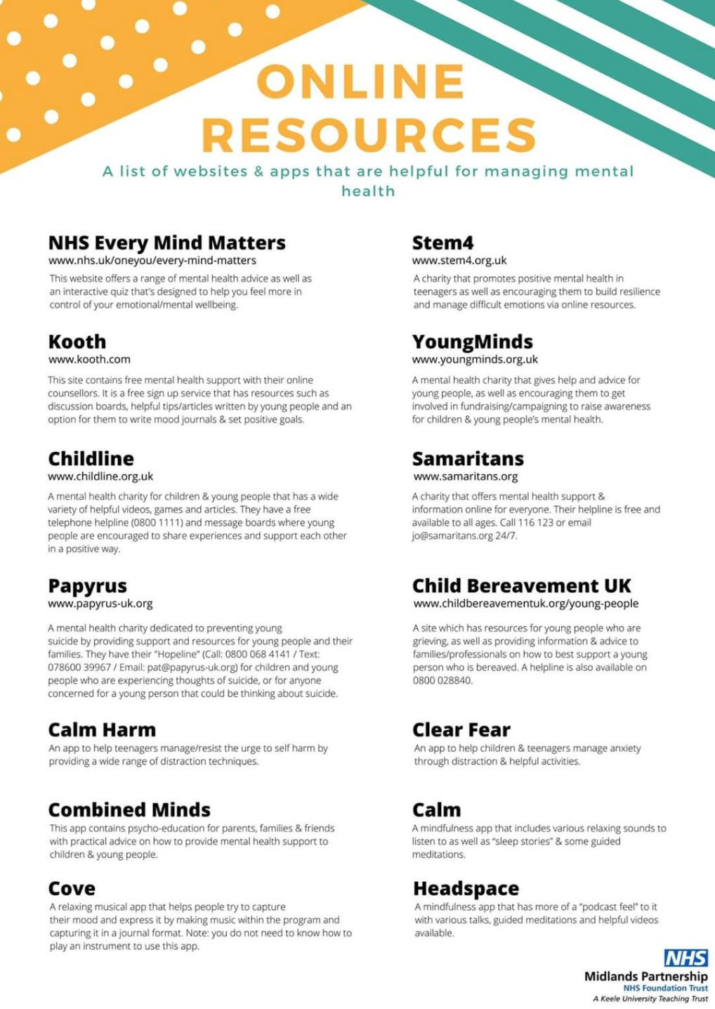 Next week is Children's Mental Health week and during these difficult times it is important we all listen to our mental health. Please see the attached information sheets with examples of activities for your children. This year Children’s Mental Health exploring the different ways we can express ourselves, and the creative ways that we can share our feelings, our thoughts and our ideas. Expressing yourself is about finding ways to share feelings, thoughts, or ideas, through creativity. This could be through art, music, writing and poetry, dance and drama, photography and film, and doing activities that make you feel good. Please use the link below for resources to support parents and carers at home: